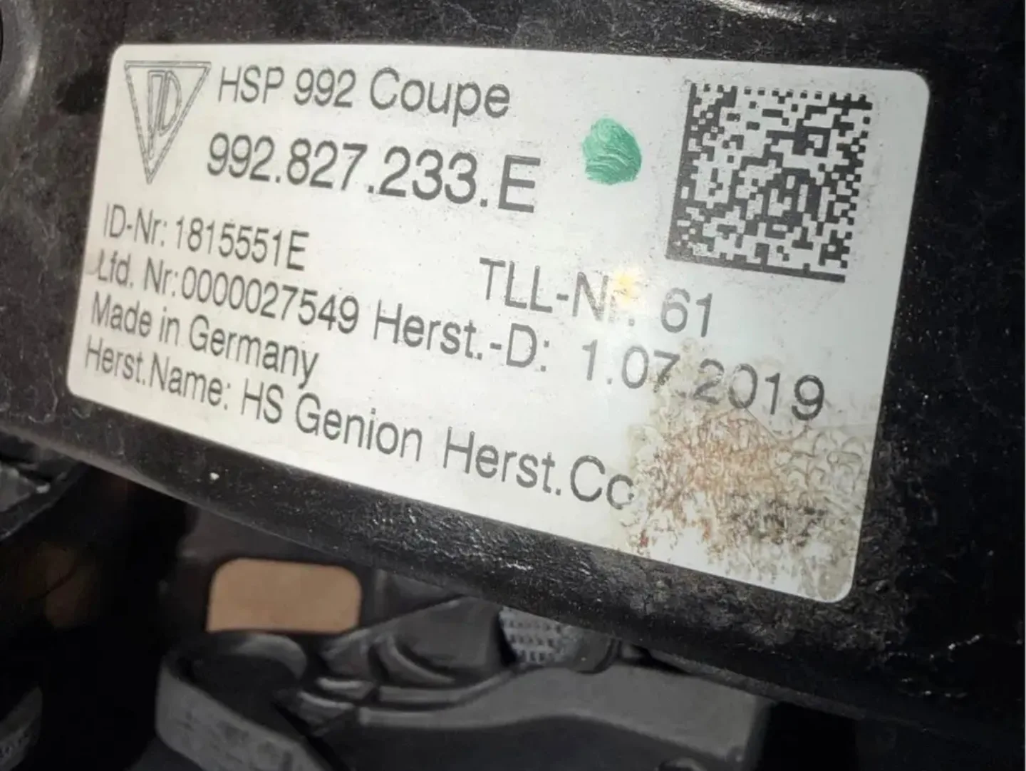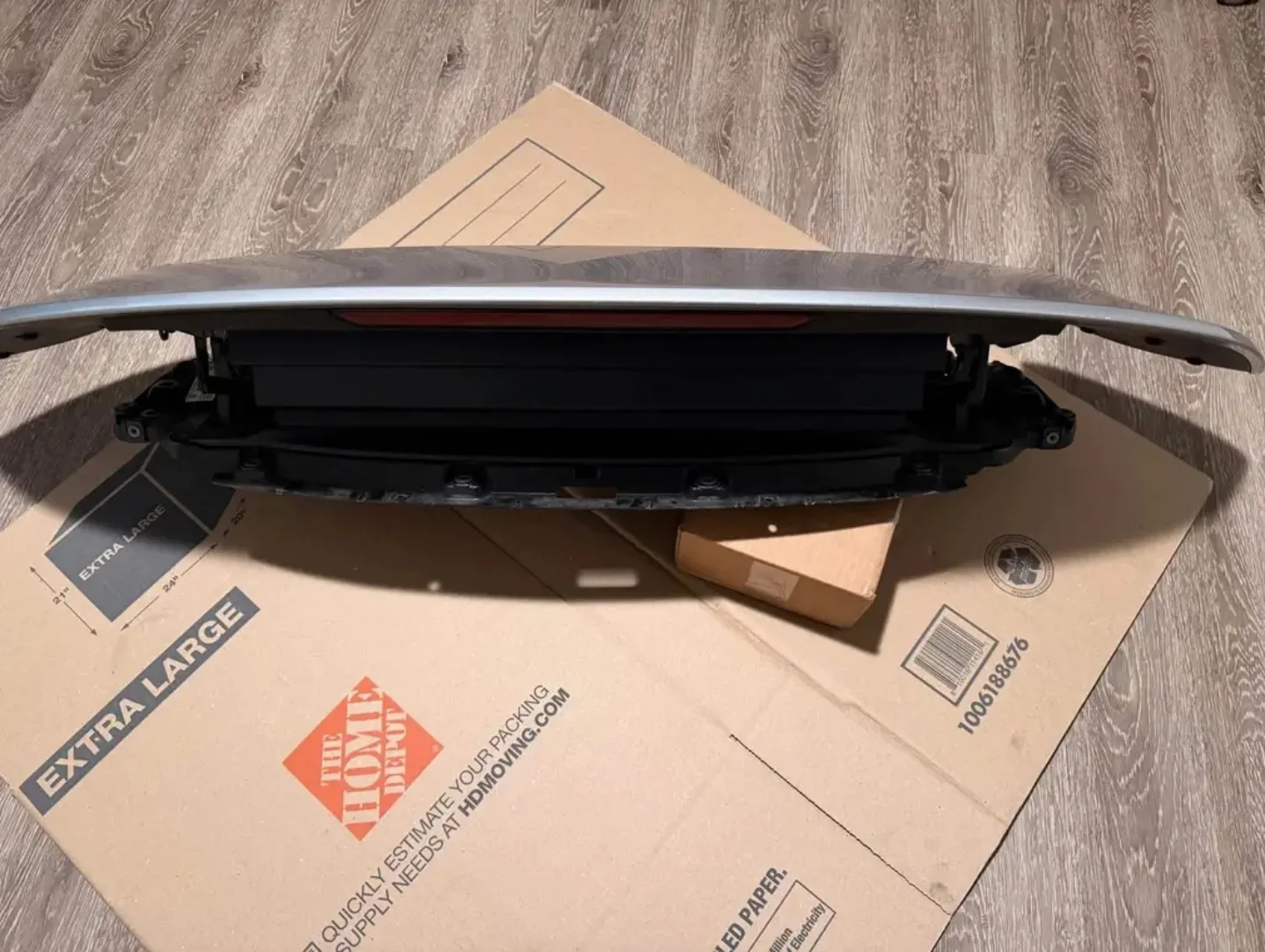 Genuine Porsche 992.827.233.E adaptive rear deck-lid spoiler in excellent, color-matched Agate Grey (M7W). Only minor scratches, no broken tabs or stripped threads (see close-ups). Perfect upgrade for a base 992 or replacement for a cracked / de-laminated unit.